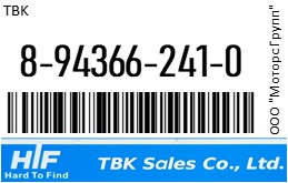 | 99376 | TBK | 8-94366-241-0 | TBK 8-94366-241-0 / 8943662410 НасосМасляный ISUZU / / 4BD1(T) | 4 | 15600 | Только для отправки по России. |  |